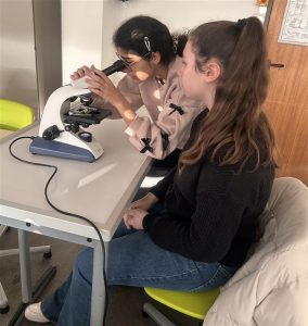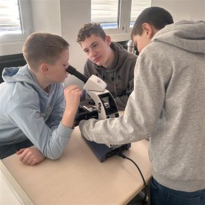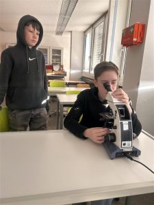 Im Fachunterricht haben sich die Schülerinnen und Schüler der Jahrgangsstufe 7 (WP1-Kurs) mit der mikroskopischen Welt beschäftigt. Mithilfe von Fertigpräparaten untersuchten sie verschiedene Zellstrukturen bei unterschiedlichen Vergrößerungen und konnten so faszinierende Details sichtbar machen.