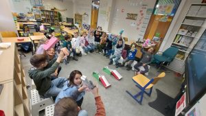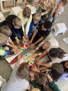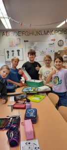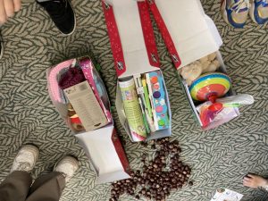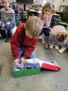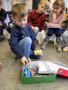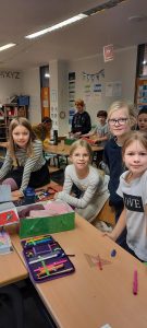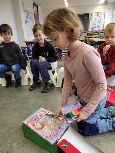 Passend zur Tugend „Hilfsbereitschaft“, die in der Grundschule gerade besprochen wird, konnten die Kinder ihre eigene Hilfsbereitschaft direkt ganz praktisch werden lassen. Mit Begeisterung füllten sie Schuhkartons mit „Liebe“ in Form von Spielsachen, Materialen für die Schule wie Heften, Stiften, Radiergummis oder kleinen praktischen Geschenken wie Schals, Zahnbürsten, Handcreme und natürlich auch mit ein paar weihnachtlichen Süßigkeiten.