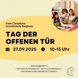 Ist die Freie Christliche Grundschule die richtige Schule für mein Kind? Zur Beantwortung dieser und weiterer Fragen rund um die Einschulung in die 1. Klasse oder auch zur Information bezüglich eines Quereinstiegs, ist der Besuch des Tages der offenen Tür an der Freien Christlichen Grundschule eine passende Gelegenheit.