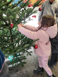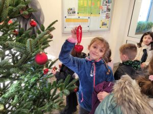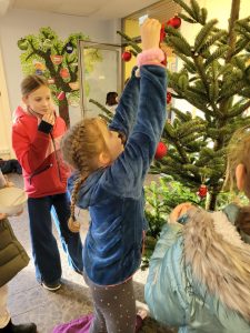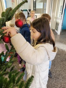 Ab heute weihnachtet es auch im Foyer unserer Schule, denn – initiiert durch Herrn Riemer aus der Gesamtschule – zog ein „Oh-Tannenbaum“ ein. Der nicht nur zur Sommerszeit grünende Nadelbaum wurde, nachdem er seinen Standort gefunden hatte, von den Grundschulkindern mit Sternen und Kugeln verziert und wartet nun auf den winterlichen Schnee.